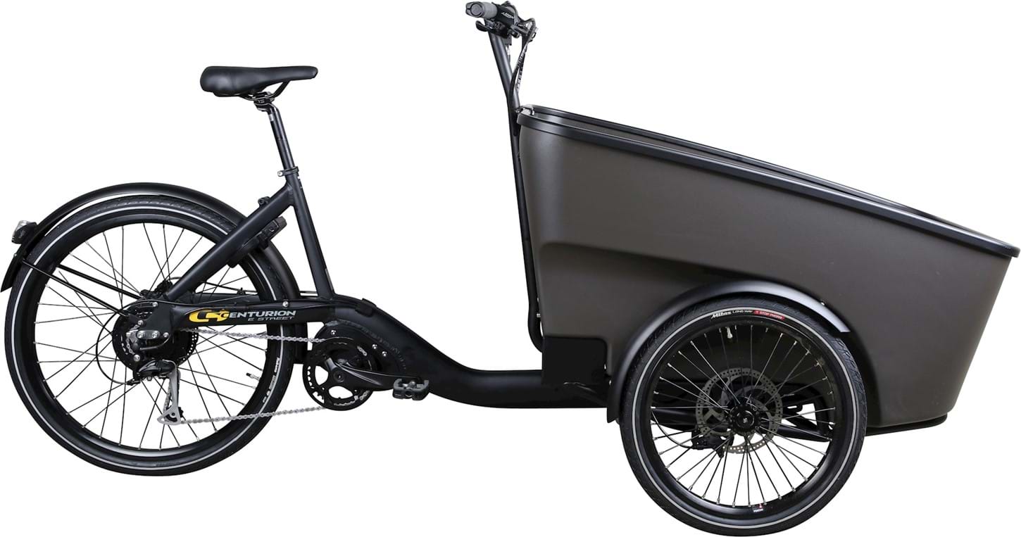 Centurion E Street er en smart og sikker el-ladcykel, der komfortabelt kan transportere 2 børn. Du kan også montere 1 barnestol via ISOFIX-monteringspunkterne. E Street er yderst praktisk og følger Centurion DNA’et for funktionalitet og design, og kan prale af innovative funktioner såsom USB-opladning i kabinen. Det gennemførte stel, nøje udvalgte komponenter og et elsystem fra danske Promovec gør cyklen kraftfuld, manøvrerbar og nem at cykle på.
