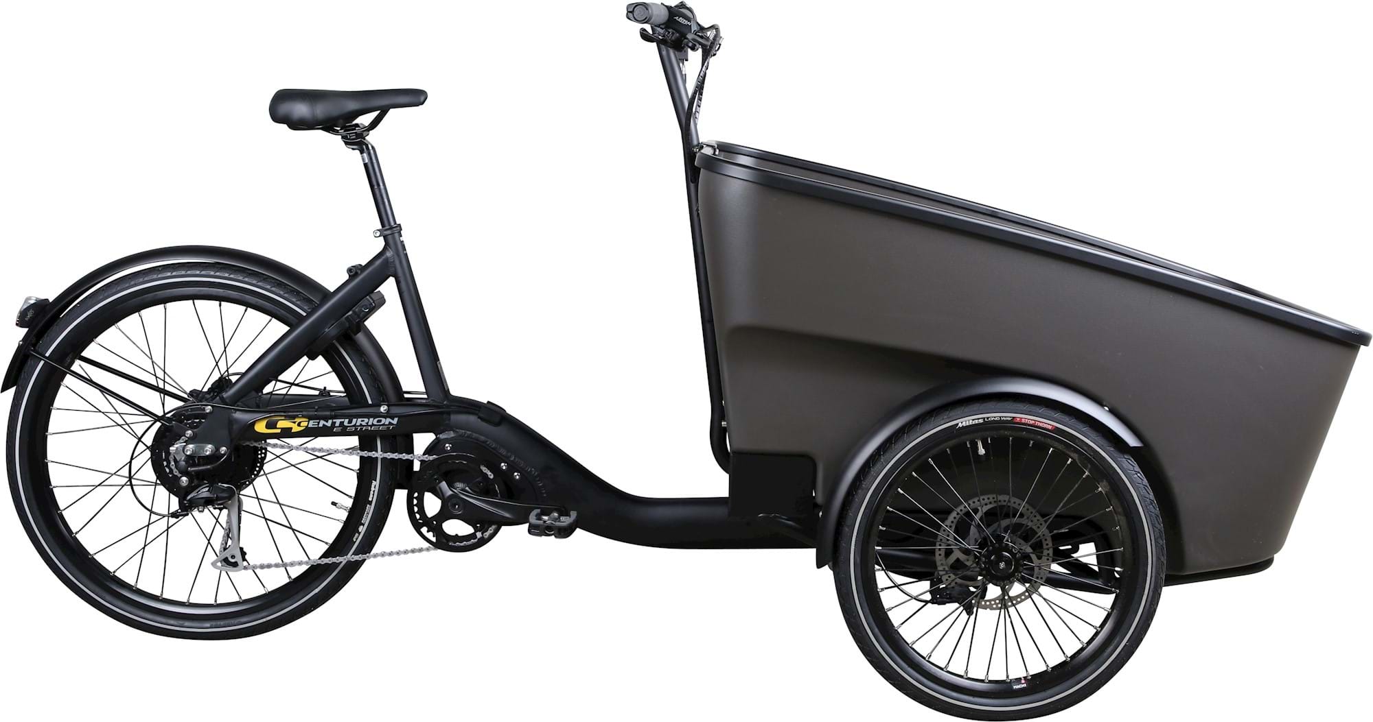 Centurion E Street er en sikker og praktisk el-ladcykel med plads til 2 børn i ladet og mulighed for barnestol via ISOFIX. Den er udstyret med en kraftig Promovec baghjulsmotor, 691Wh batteri (op til 100 km) og hydrauliske skivebremser.