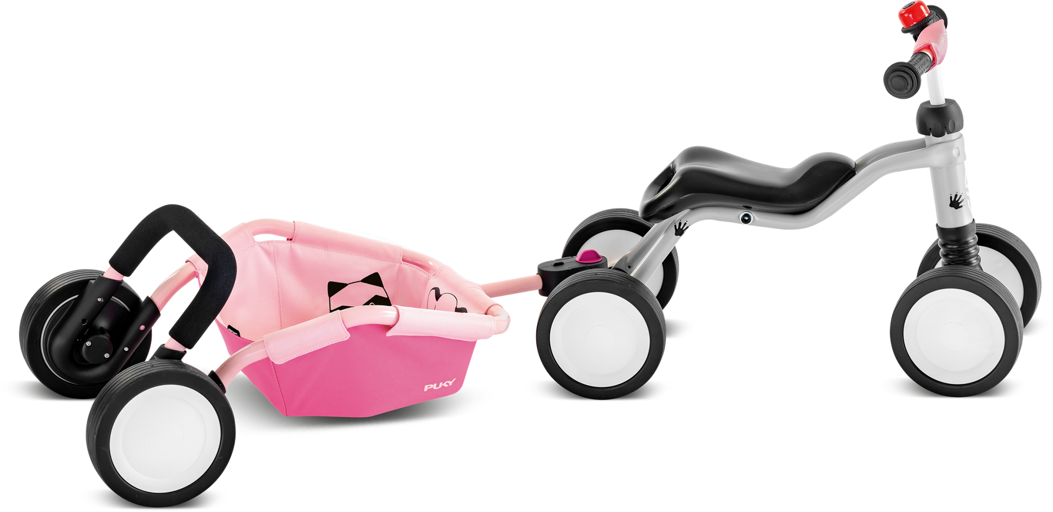 PUKY Traily er en praktisk og alsidig 2-i-1 løsning til børn fra 10 måneder, der kombinerer gåvogn og legetøjstrailer i ét. Brug den som en stabil støtte, når dit barn tager sine første skridt – og konverter den nemt til en trailer, der kan spændes efter en PUKY løbecykel* til de mindste.